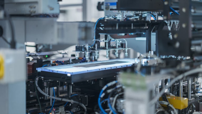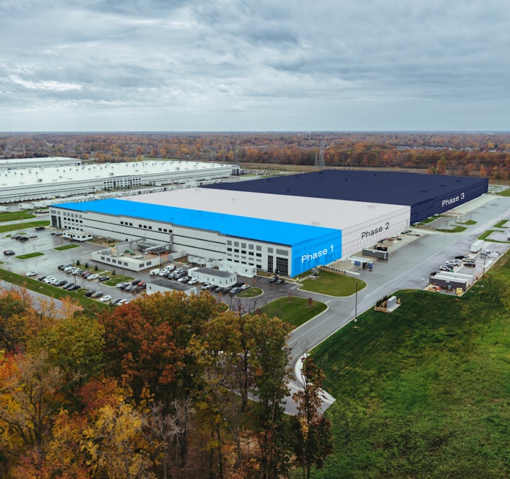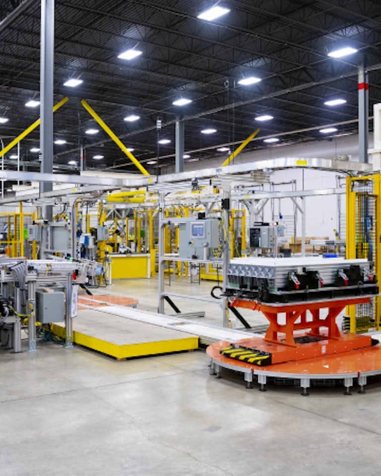 This initial production line manufactures cells using the same process ONE plans to use at a larger scale within the 660,000 sq. foot factory.